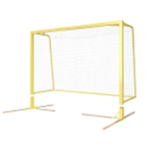 Ворота для пляжного мини-футбола/гандбола с рамой основания и боковыми дугами, мобильные, алюминиевые (алюминиевый профиль рамы ворот 80х80 мм.) Сборно-разборная конструкция. Устанавливаются в закладные стаканы, с крышкой, высотой 400 мм., с опорой под деревянный брус. Основание и боковые дуги ворот выполнены из стальной трубы диаметром 42 мм., покрыты цинкосодержащим грунтом и окрашены порошковой краской. Усиленные угловые соединения. Цвет ворот - желтый (RAL 1016).