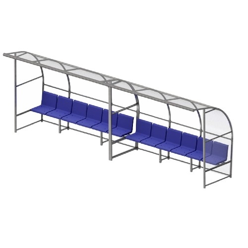 Скамейка для запасных игроков с навесом на 10 посадочных мест.