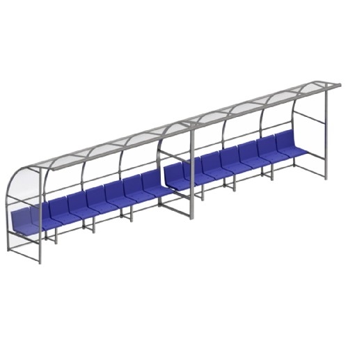 Скамейка для запасных игроков с навесом на 15 посадочных мест.